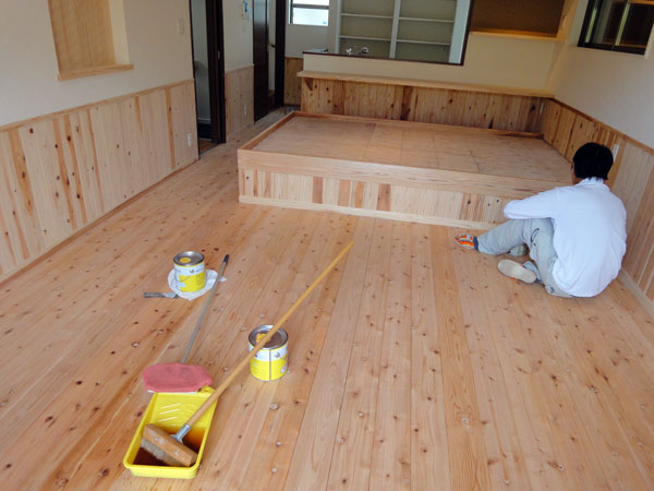 古賀市T様邸の塗料工事の様子です♪ 無垢の床材を使用した際は、セイケンハウスではOSMOという塗料を使用しています。 自然の植物油(ひまわり油、大豆油、アザミ油)と植物ワックスは、自社の工場で幾度にもわたって精製し、 不...