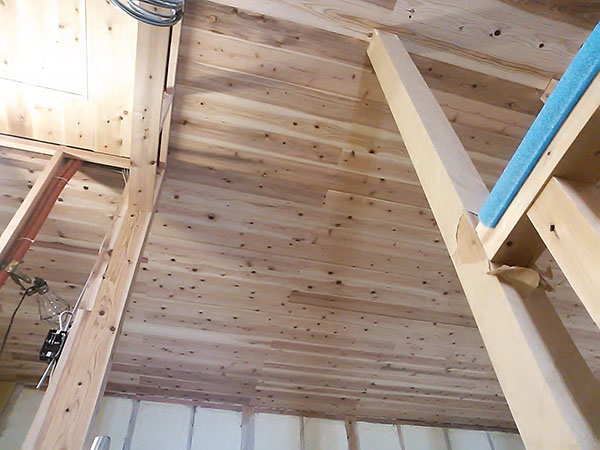 須恵町赤坂E様邸の幸せづくり状況:UB工事中・天井杉板張り♪