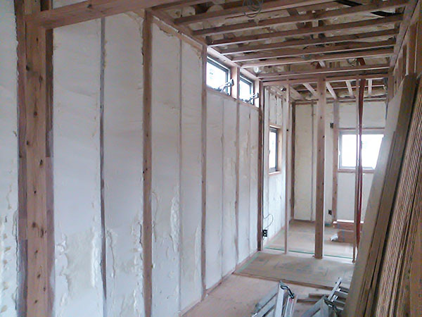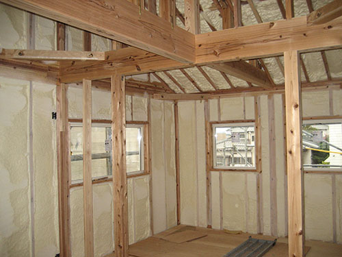 須恵町赤坂E様邸の幸せづくり状況:吹付け断熱工事完了