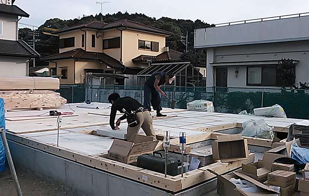宇美6丁目 H様邸の幸せづくり状況です~♪ 土台敷きが行われました! 土台敷きとは、基礎コンクリートの上に土台やパッキンを設置していく作業です! 床下断熱材も入れています! 次の工程に進みます...