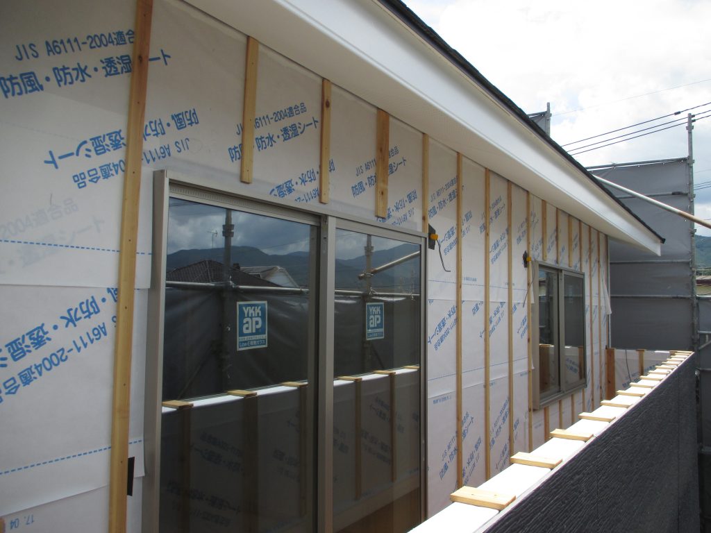 早良区野芥 K様邸の幸せづくり状況です♪ 外壁シート工事が完了しました!   その上に、サイディングを施工します!   どんな外観になるか楽しみです~♪