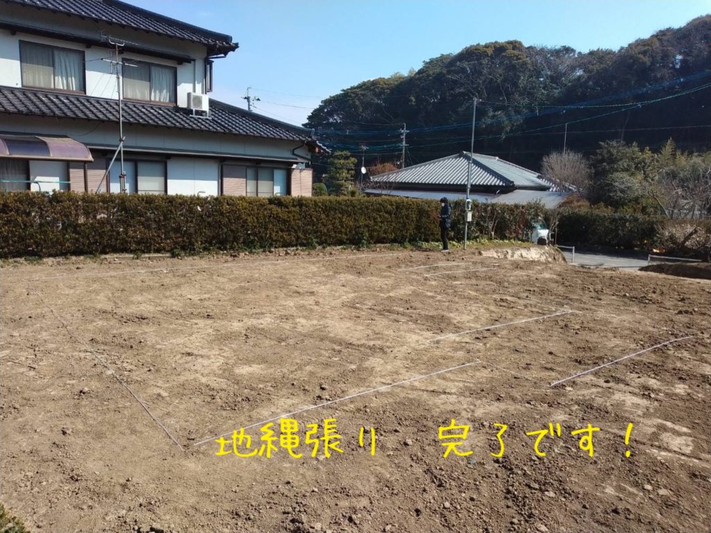 岡垣町O様邸の幸せづくり状況です♪ 地縄張り完了してます! 地盤調査が行われ、十分に建物を安全に保つ、強さのある土地だとわかりました(#^^#) 地盤調査後、隣地の境界線から距離を測り杭を打ち、ロープを貼れ...