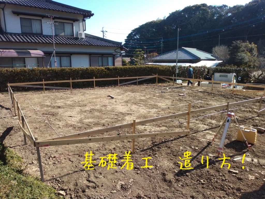 岡垣町O様邸の幸せづくり状況です♪ 基礎着工しました! 基礎工事の初めの作業『遣り方』です♪ 遣り方とは、基礎工事の初めに地面を掘る前に行う位置出しの事です!木の杭を地面に打ち込み、貫き板を固定して作ります♪  ...