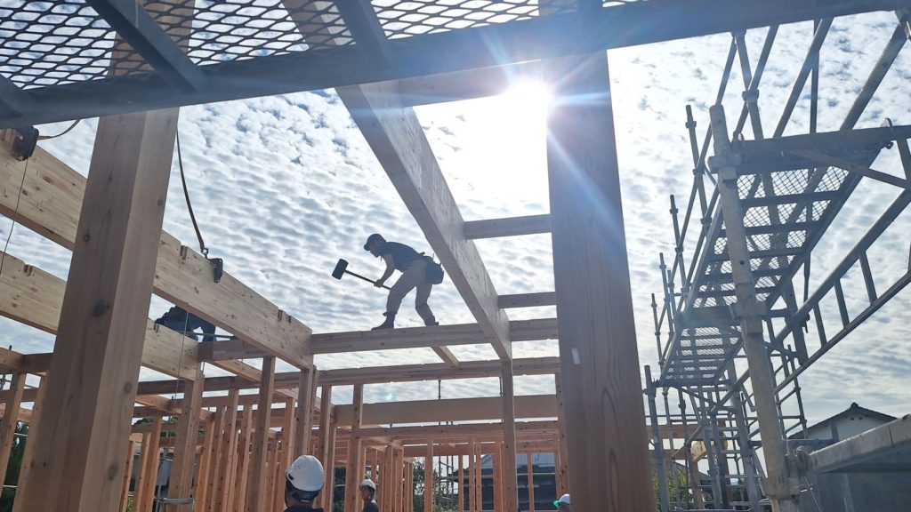 こんにちは、福岡の注文住宅セイケンハウスです~♪ 朝晩が涼しくなって、秋の気配を感じ始めた9月最後の週末、西区に建築中M様邸の棟上げ工事が行われました! 家の基礎工事が終わって、その上に家の枠組み(梁柱など)を組み始め、...