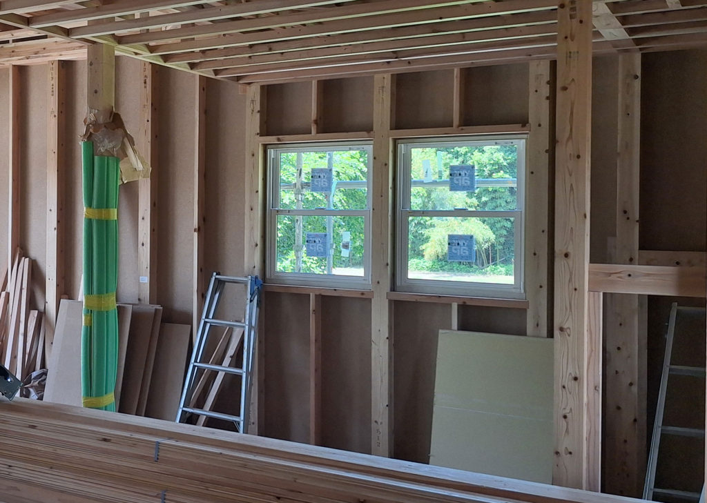 筑前町T様邸の幸せづくり状況です♪ 木工事中です! 棟上げ後は、間柱、まぐさ、筋交いの施工などがあります! サッシも取り付けられています! 棟上げは1日ですが、これから先の工程は、細かい作業が多くなります! 次の工程に進...
