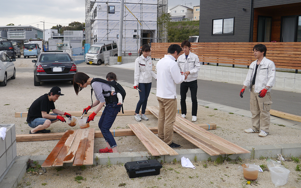 先日、宇美中央8号地 N様邸で板塀をつくるお手伝いに行ってきました!