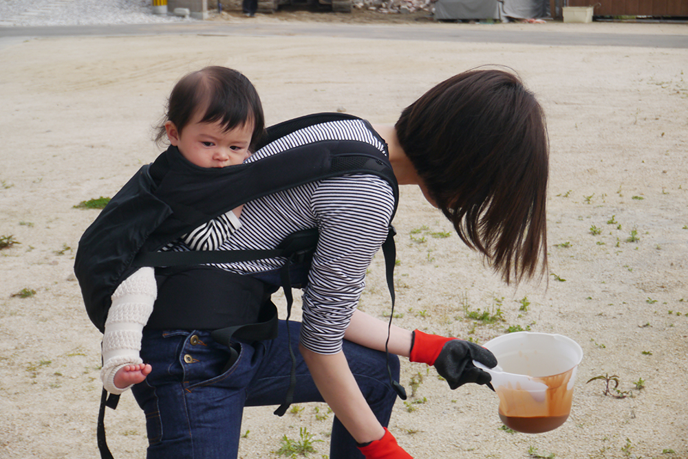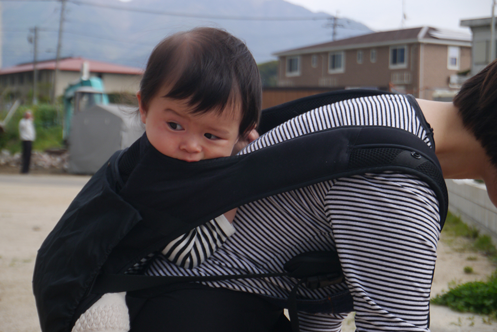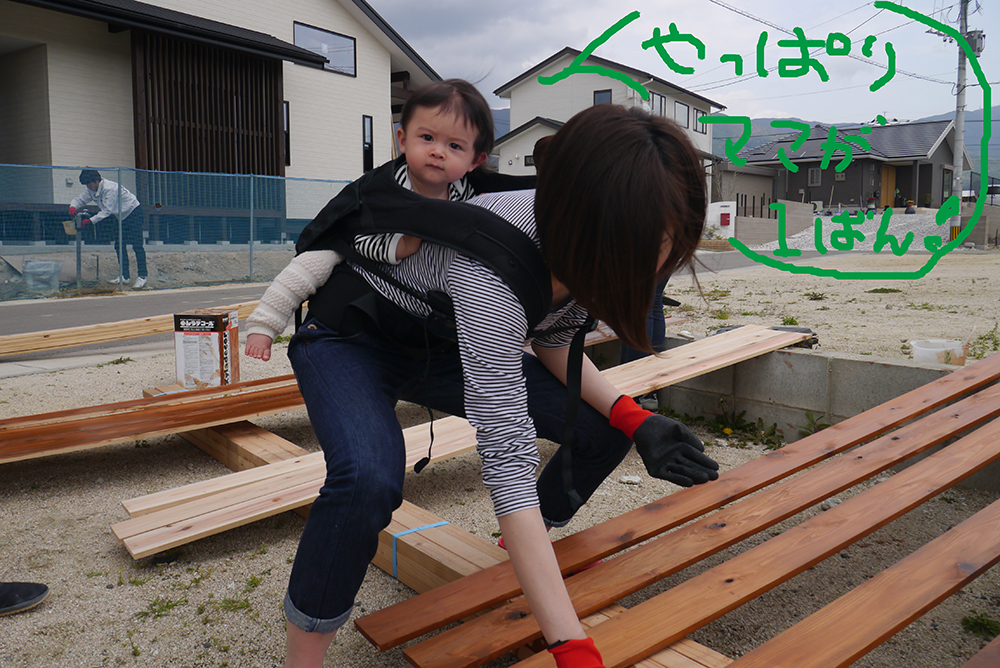ママの背中でずっと一緒に頑張った小さな現場監督さん♡