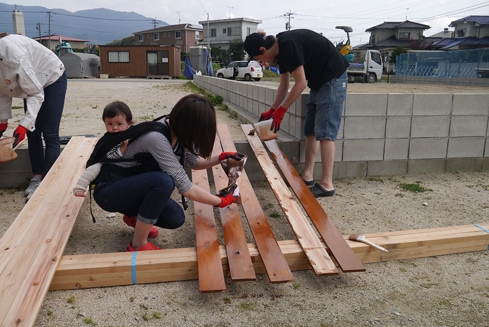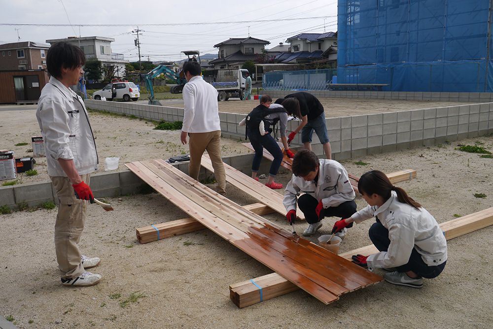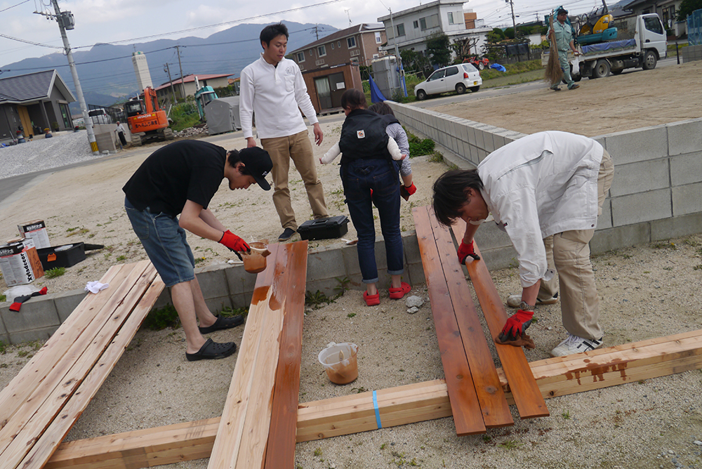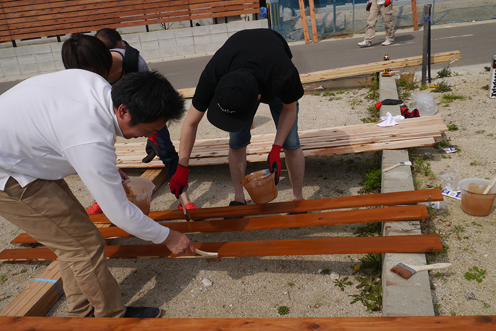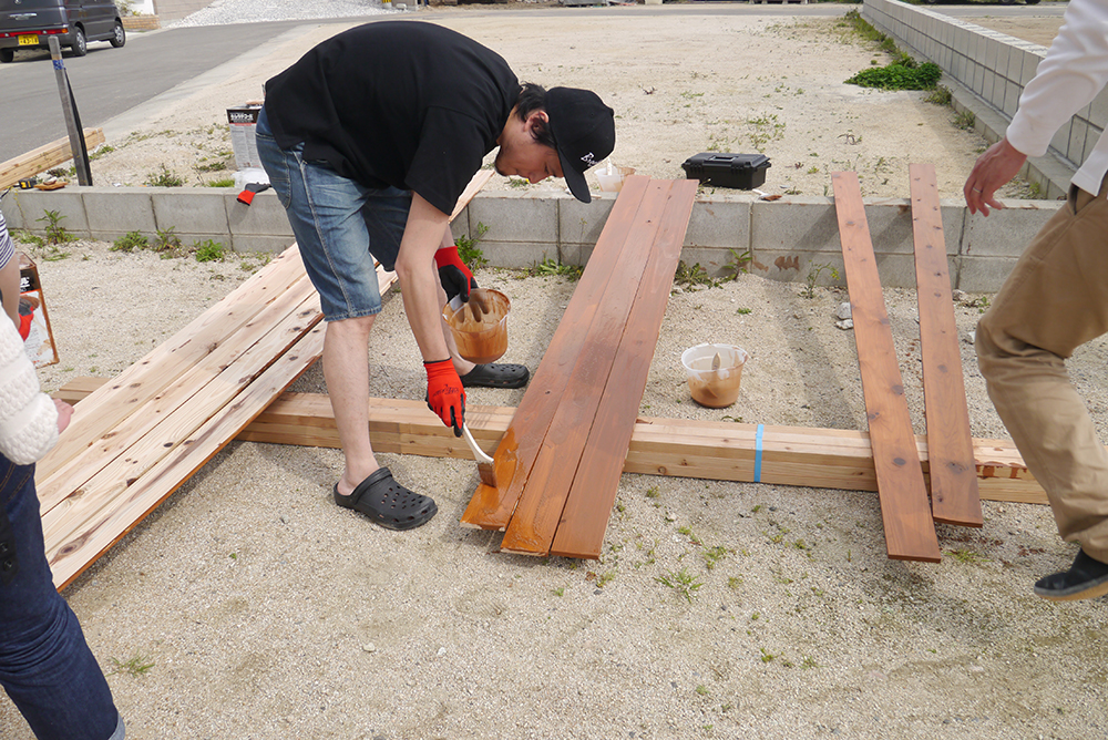 板塀づくりはまず、塗料を塗るところから!!