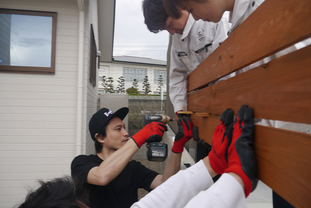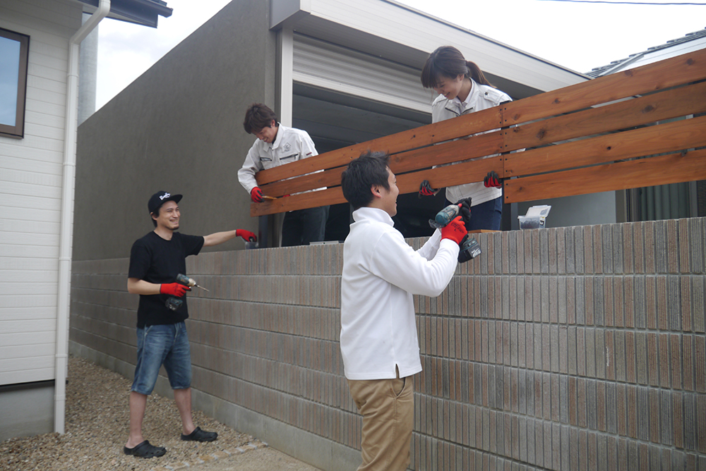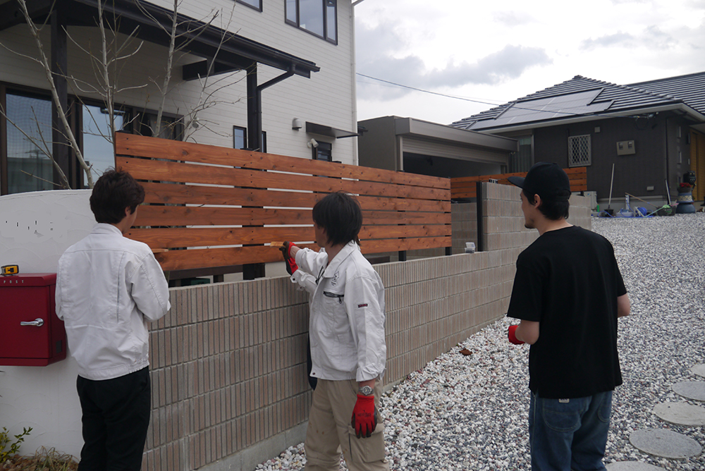 力を合わせて、N様邸の板塀は完成しました~(^^♪