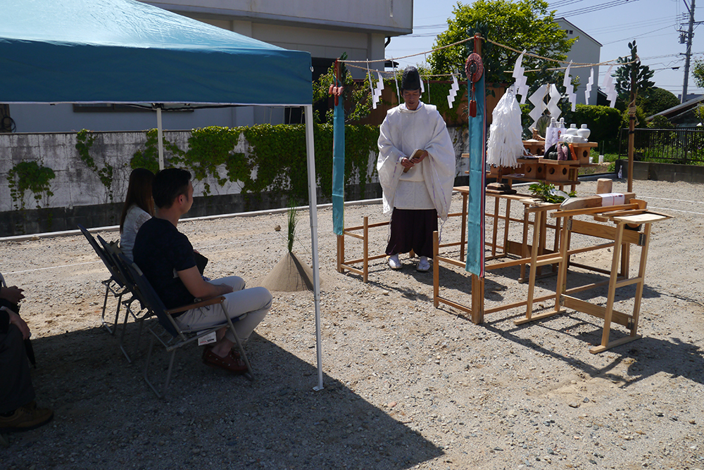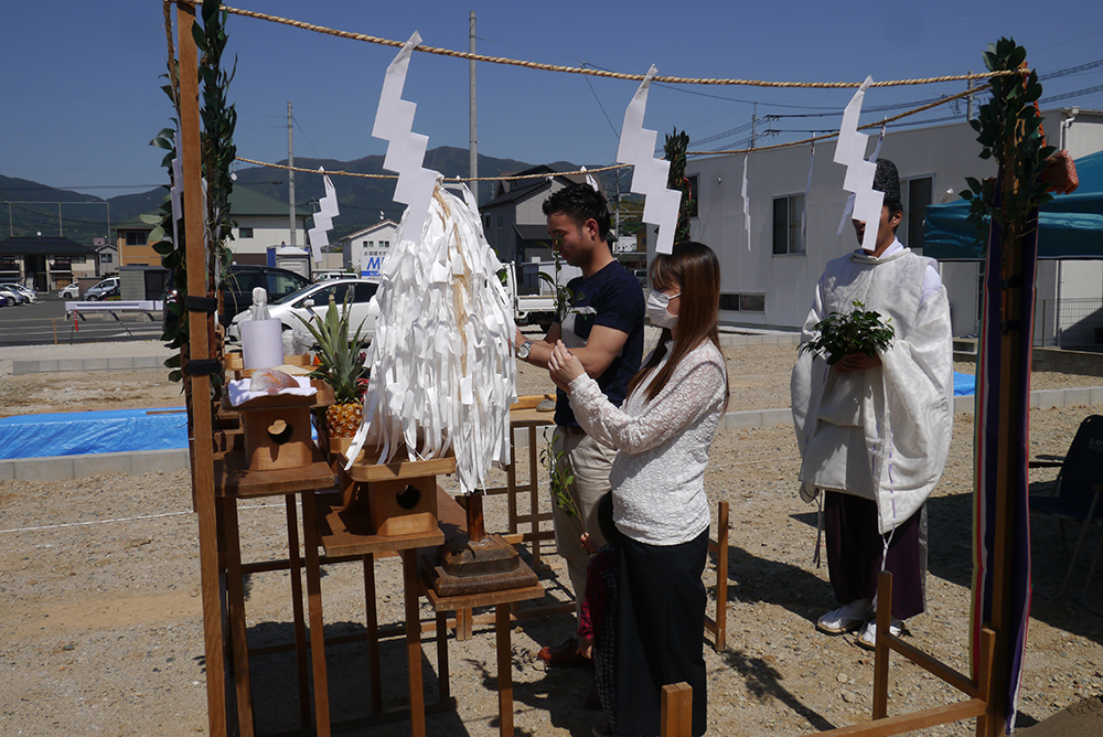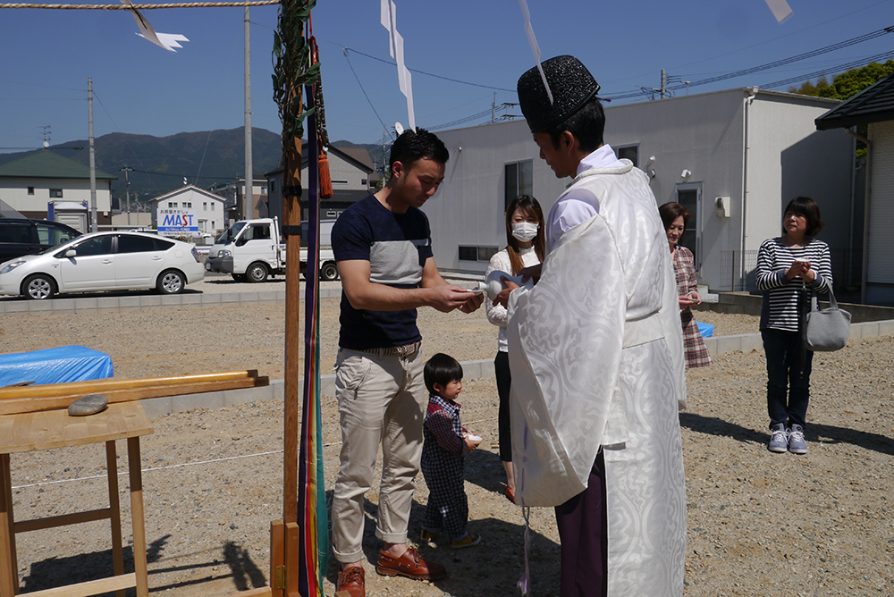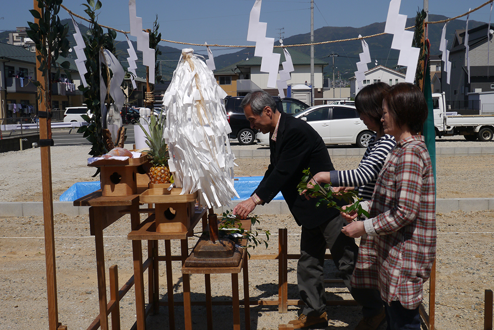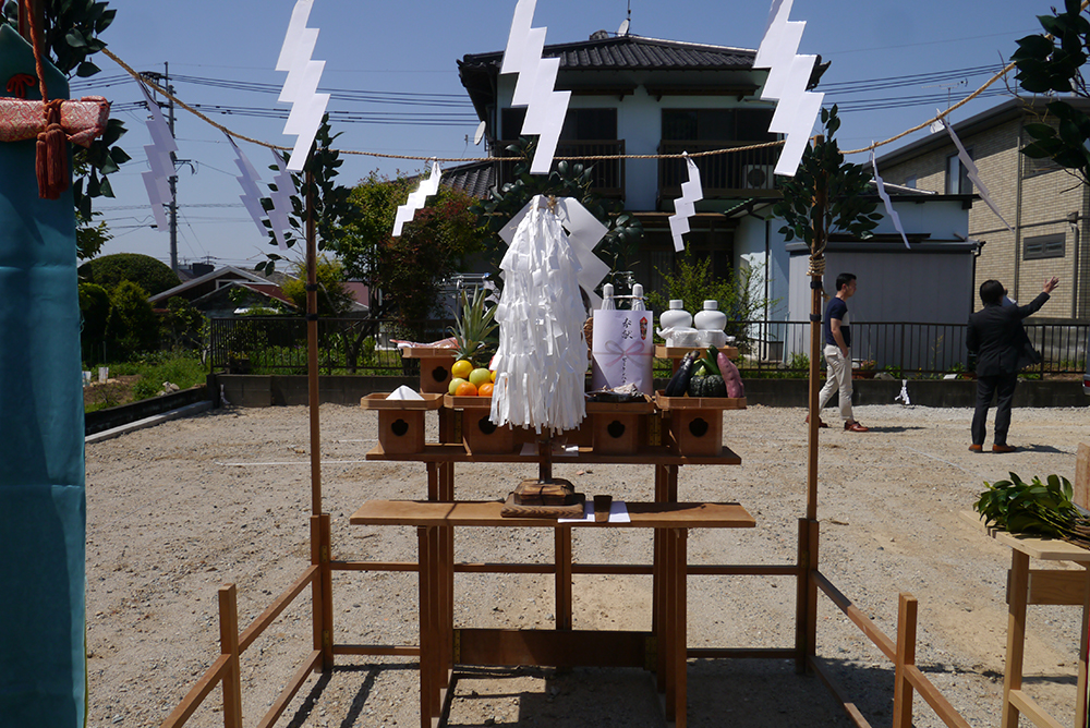 地鎮祭とは、土木工事や建築工事を始める前に行い、その土地の氏神様を鎮め、土地を利用させてもらうことの許しを得るための祭事です!
