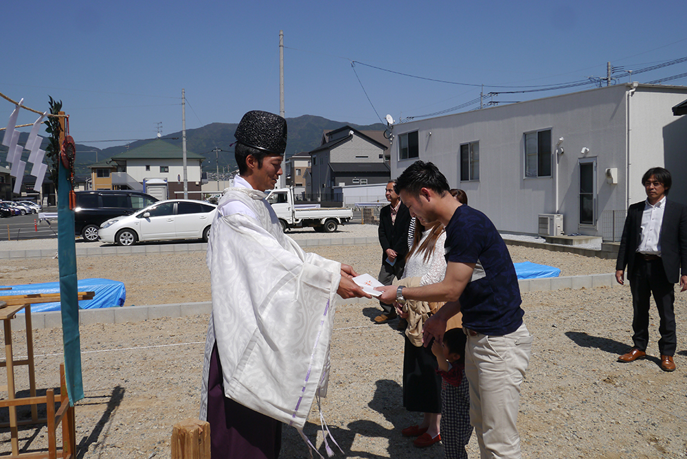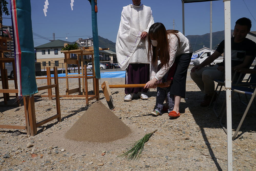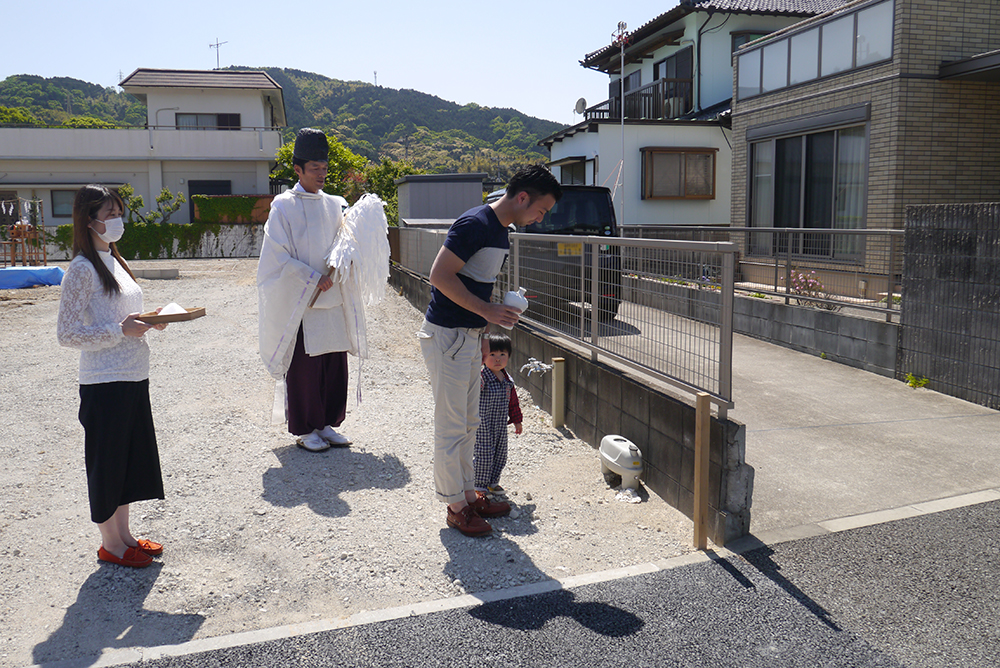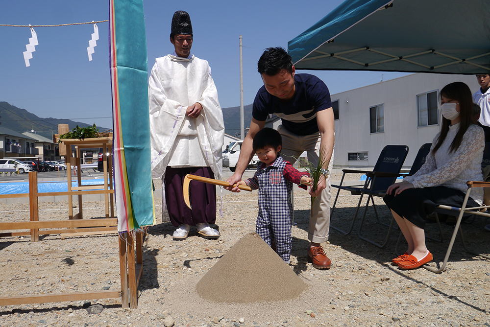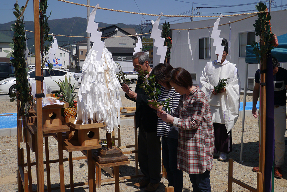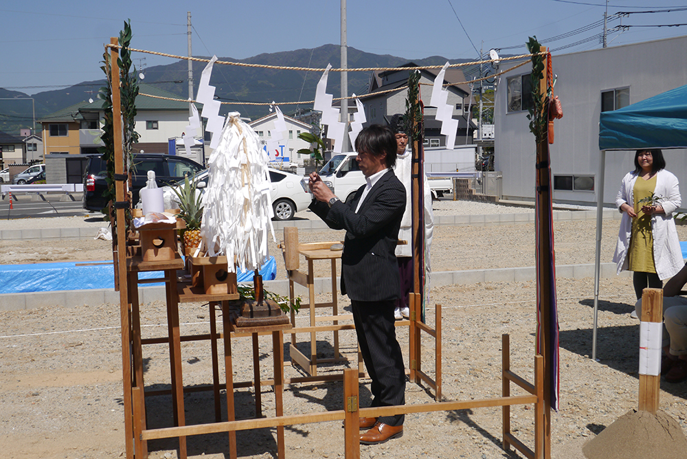 地鎮祭とは、土木工事や建築工事を始める前に行い、その土地の氏神様を鎮め、土地を利用させてもらうことの許しを得るための祭事です!