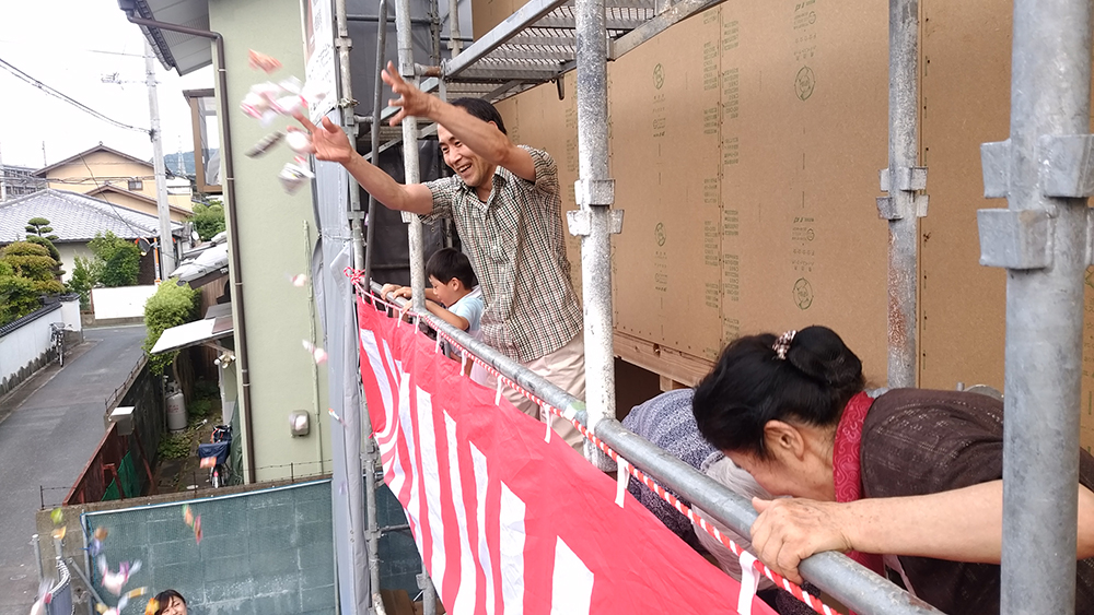 もちまきは、建物のお披露目と近隣の方へのご挨拶を兼ねて行いますが、最近は諸事情からあまり見かけなくなってしまいました(-_-)