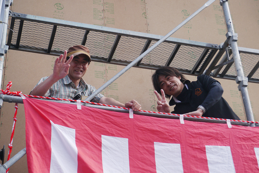 先日、棟上げ工事が無事終了した早良区野芥 K様邸にておめでたいもちまきを行いました!