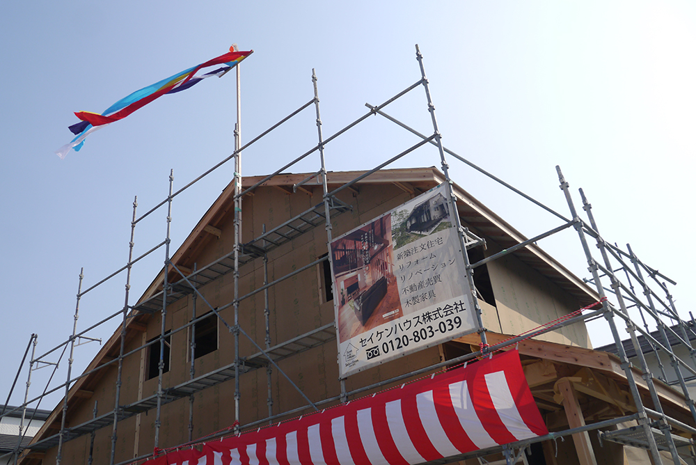 上棟式とは、建物の守護神と匠の神を祀って棟上げまで工事が終了したことを感謝し、無事に建物が完成することを祈願する祭事です!
