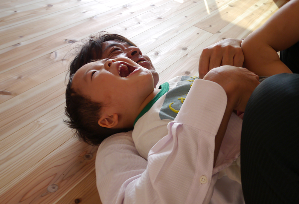 あれれ?いきなり無垢の床で戯れる笑顔のお子様が・・♡