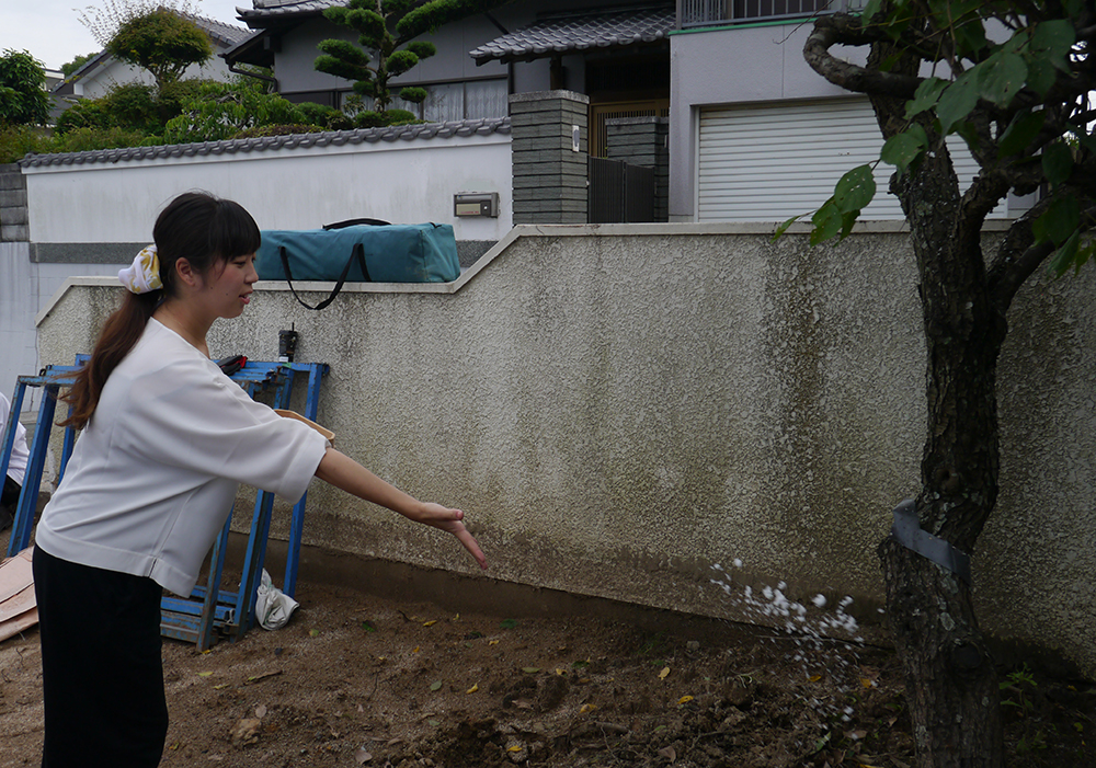 四方祓いでは敷地の四隅に酒塩を撒き、祓い清めました!