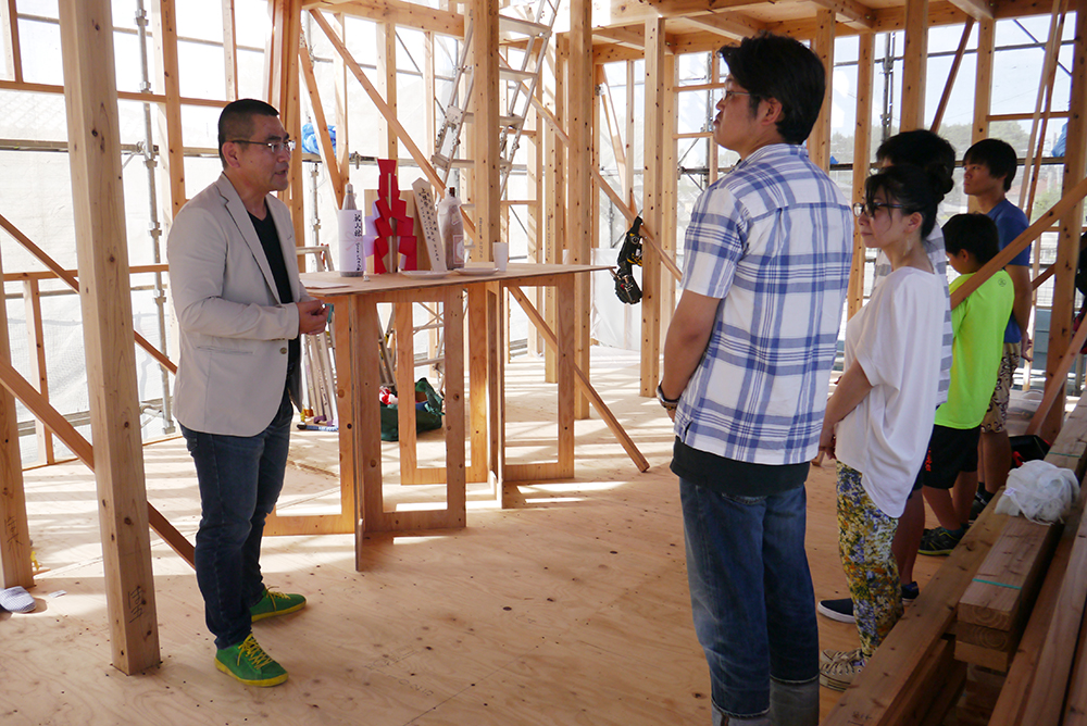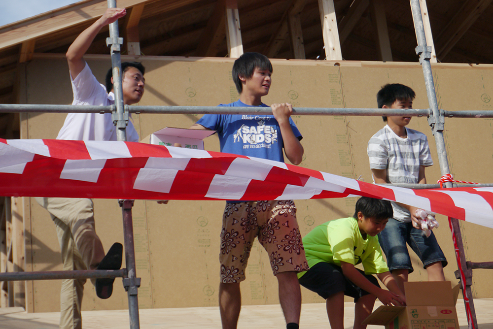 上棟式が終わって外に出てみるとたくさんの方々にお集まりいただいていました!