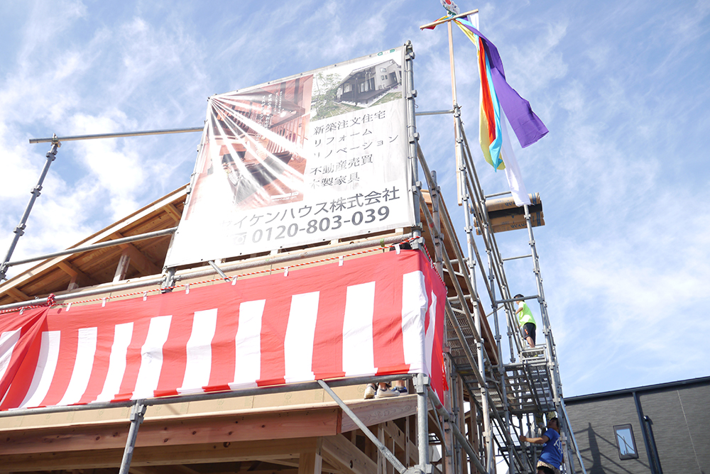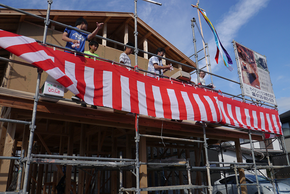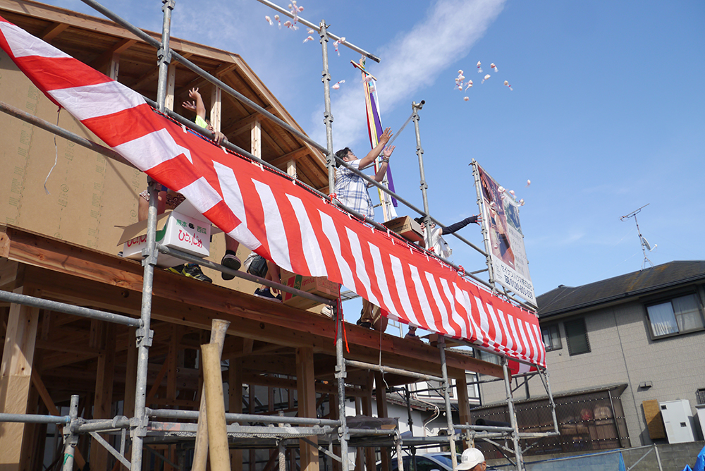 上棟式とは、棟上げが終わったことを感謝し、建物が無事に完成することを祈願する祭事です!