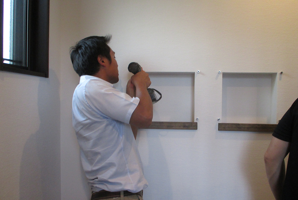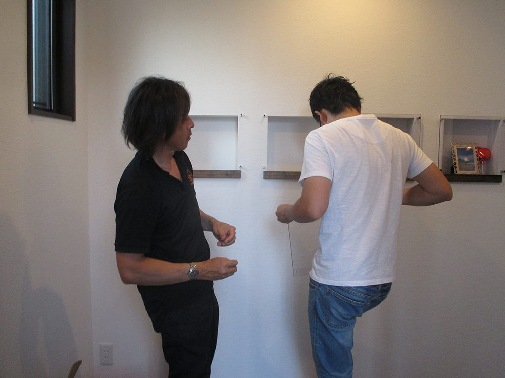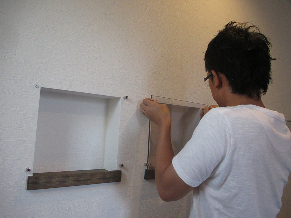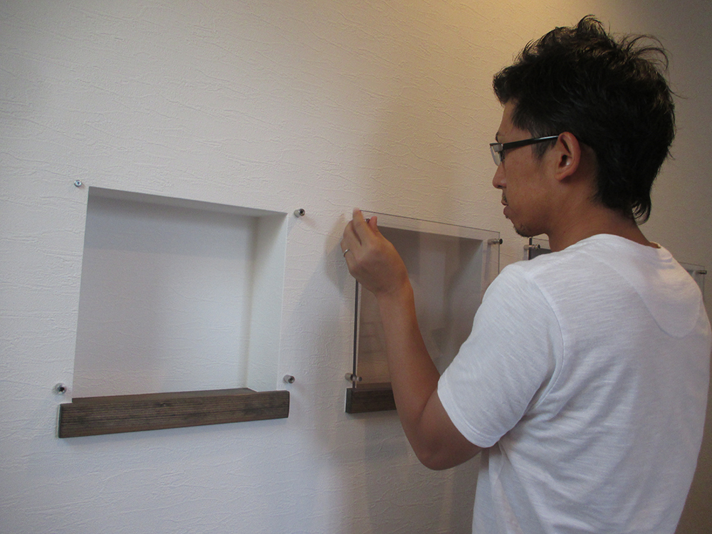 A様邸には、もともと素敵なニッチがあり、小物や思い出の品を飾るのにぴったりだったのですが、もっと欲張ってお洒落にしたい~と いうわけで、作業開始です!!