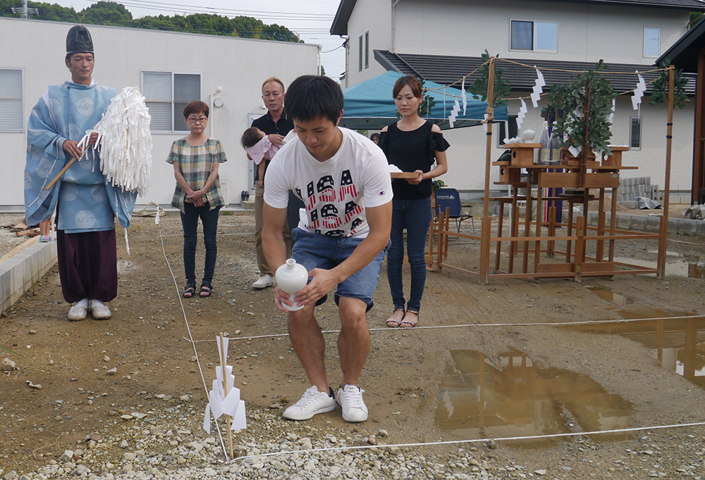地鎮祭は、10~11項目ほどの流れがあり、前半は神主さんがひとりで行います!