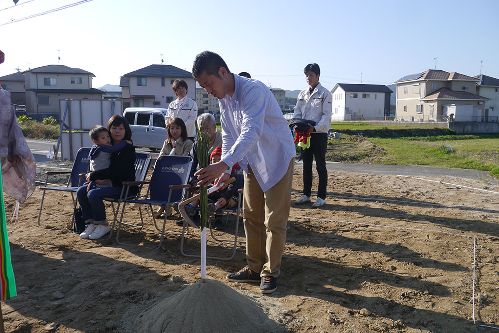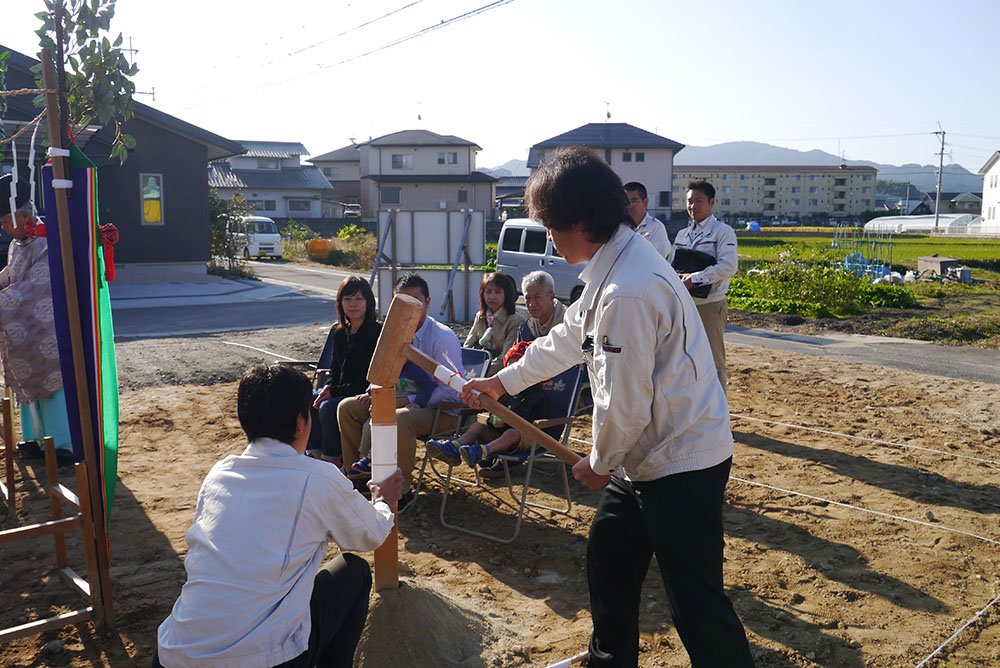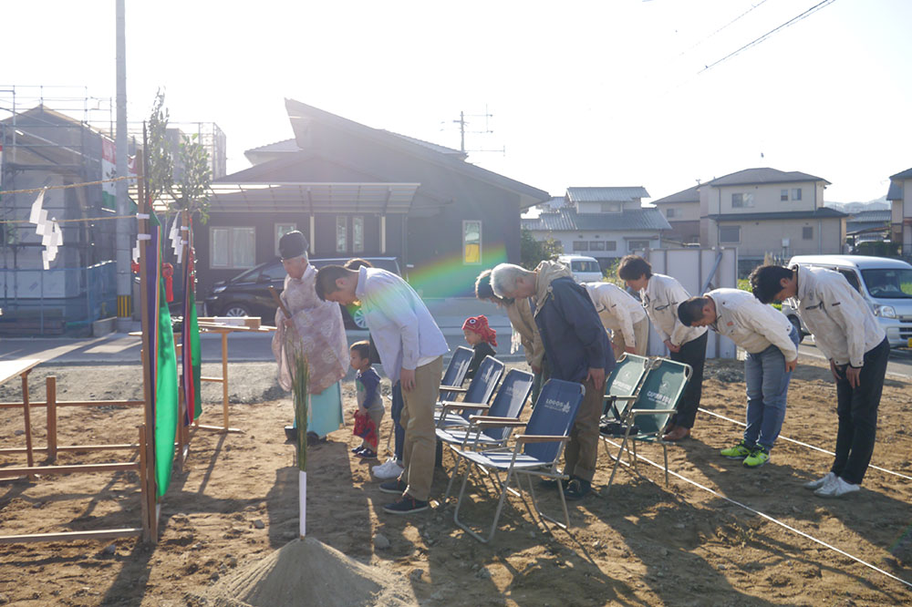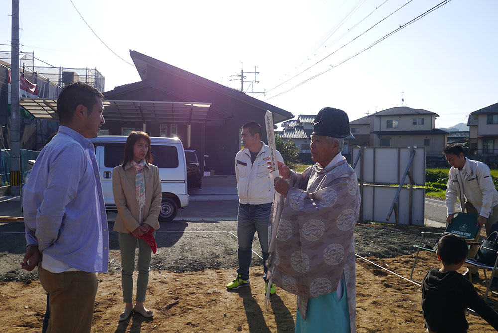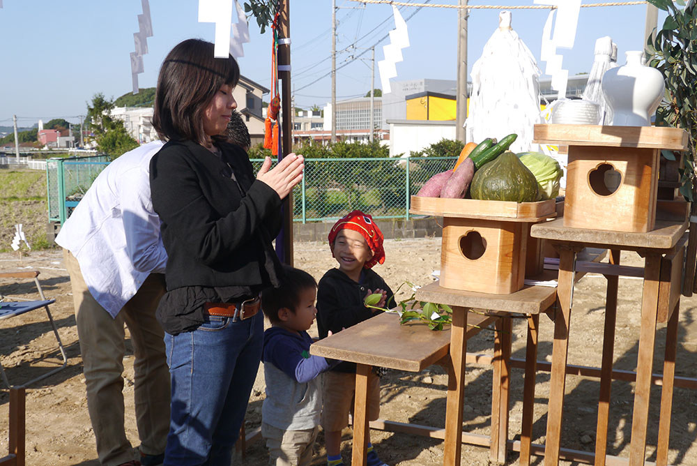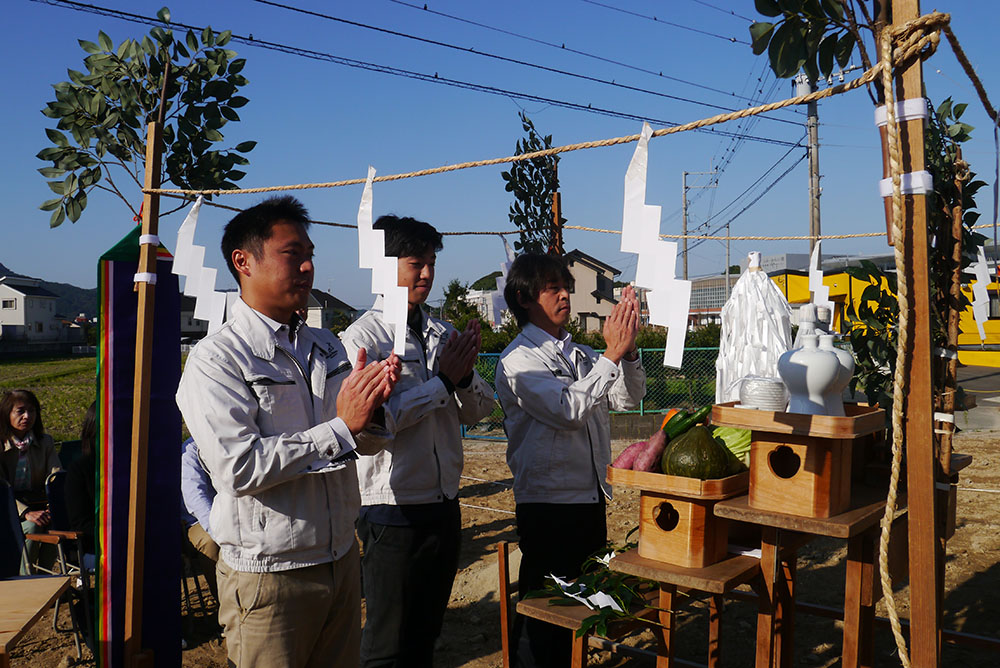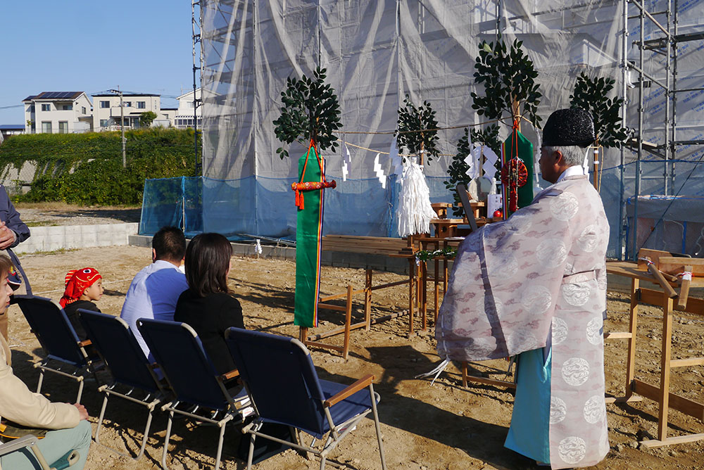 地鎮祭は、土地の神様(氏神)を鎮め、その土地を利用させてもらう許しを得るために、建築工事が始まる前に行います!