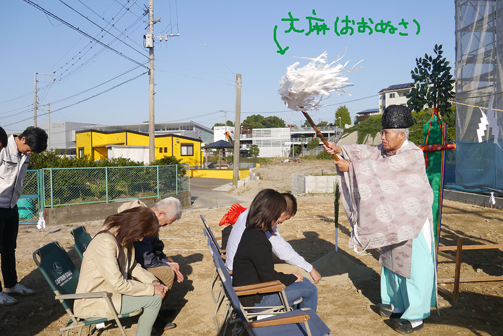 大麻で祓い清めていただき、地鎮祭の流れに沿って進みます!