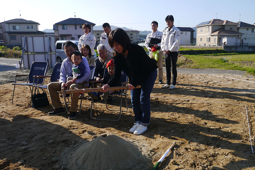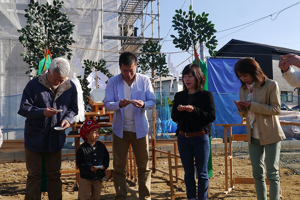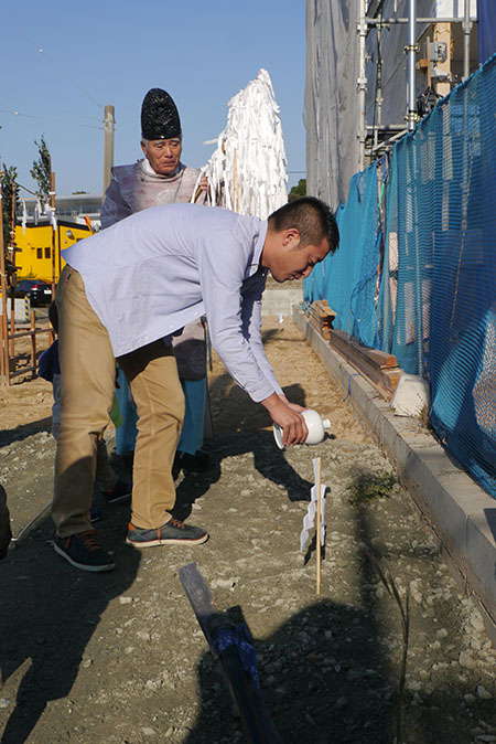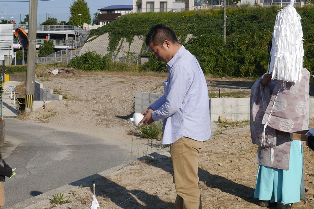 四方祓いは、施主様が敷地の四隅に酒、塩を撒いて祓い清め工事の無事安全を祈念します!