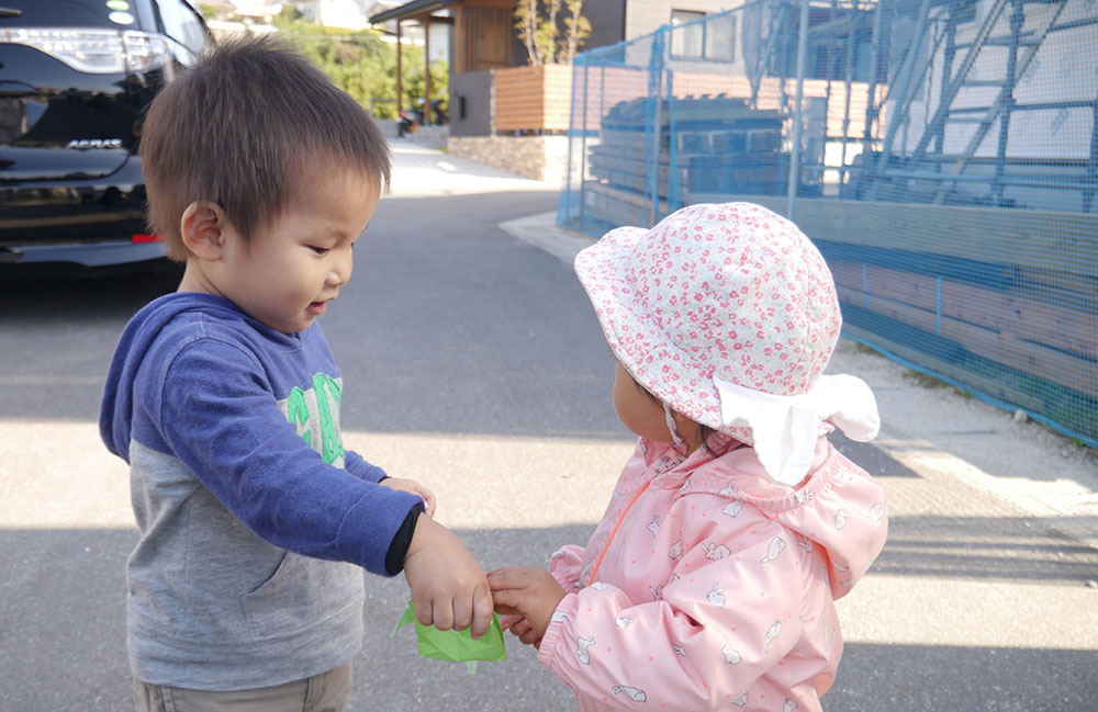 もらった折り紙に、Sちゃんもとってもうれしそう(*^_^*)