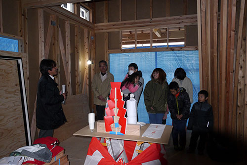 電気配線の打ち合わせ後、上棟式が執り行われましたヽ(^o^)丿♪