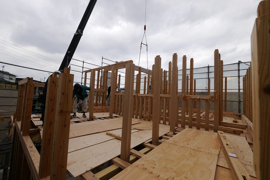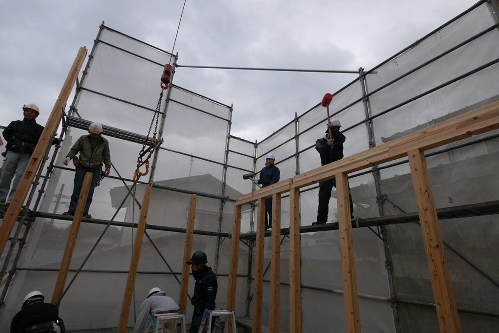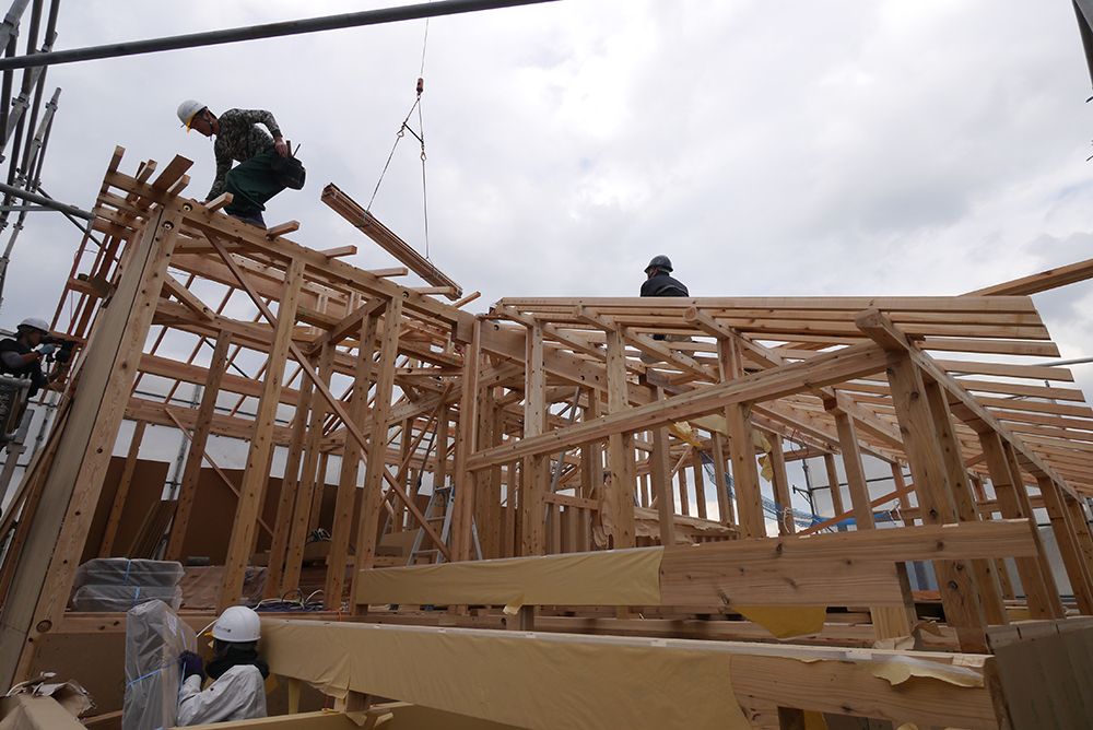 棟上げとは、基礎工事完了後に梁や柱などの骨組みを造っていくことです!