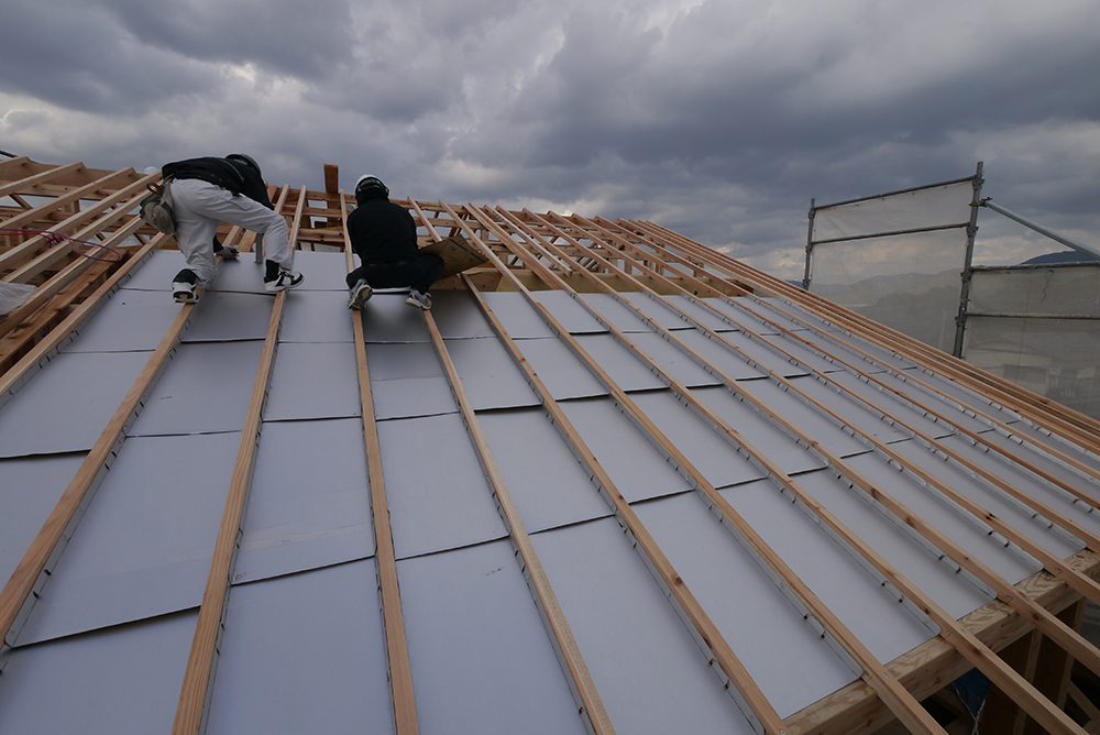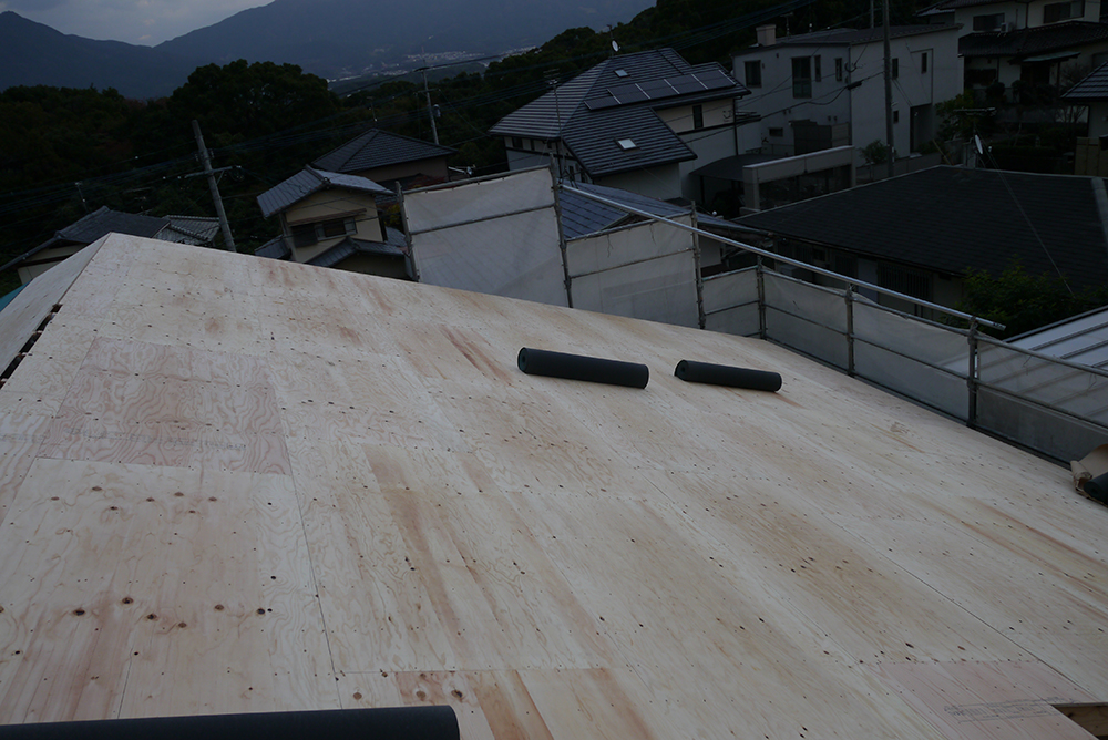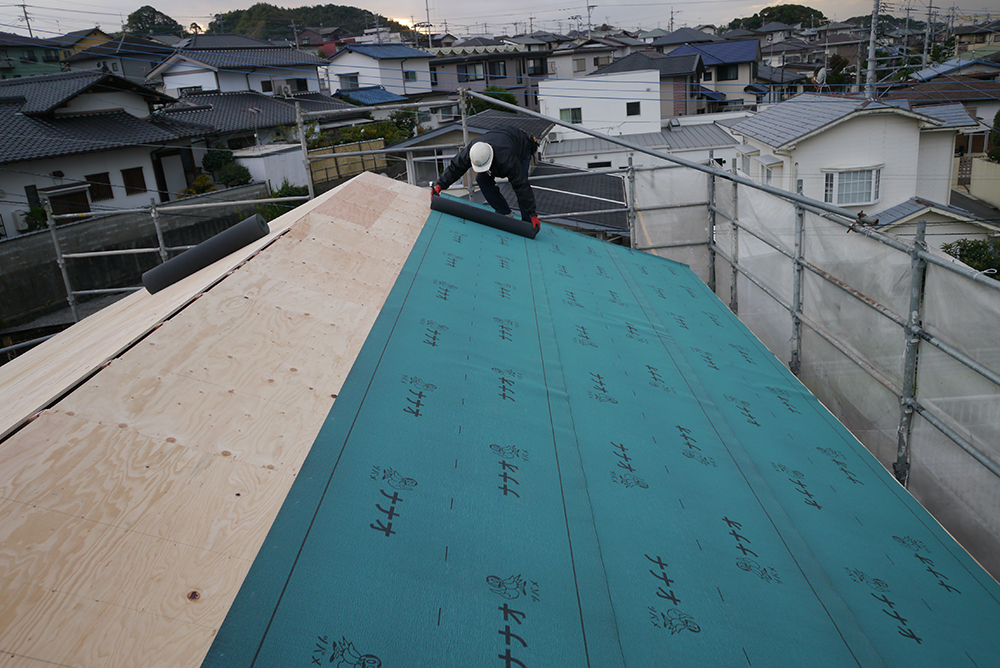 それから、通気スペーサーの上に屋根の下地合板を施します!