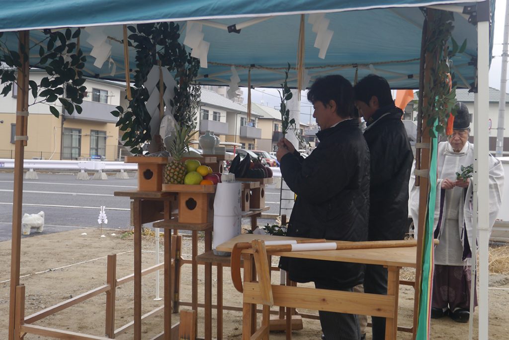 地鎮祭とは、土木工事や建築工事などが始まる前に行うもので、その土地の氏神様を鎮め、土地を利用させてもらうことの許しを得る行事です!