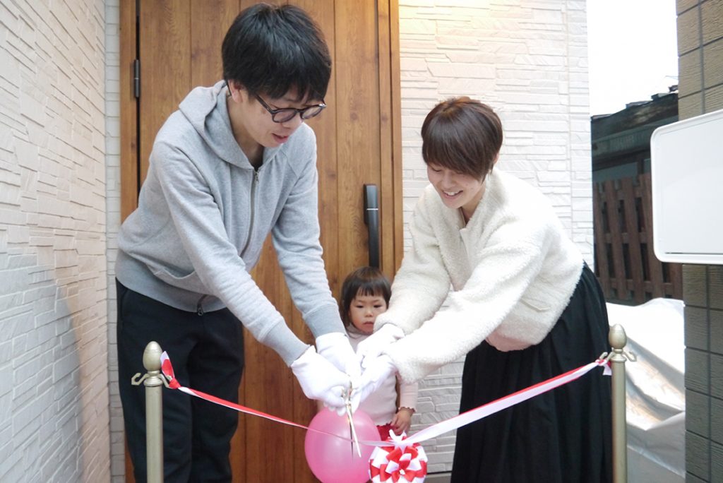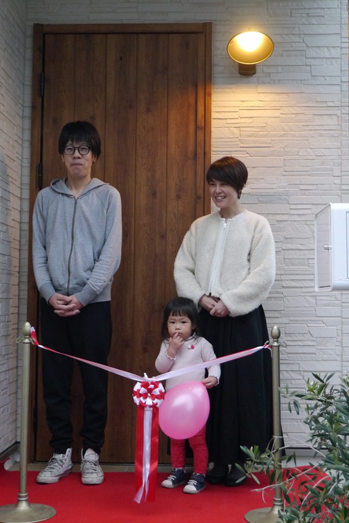 はじめは竣工を祝ってご家族でテープカットを行います♪