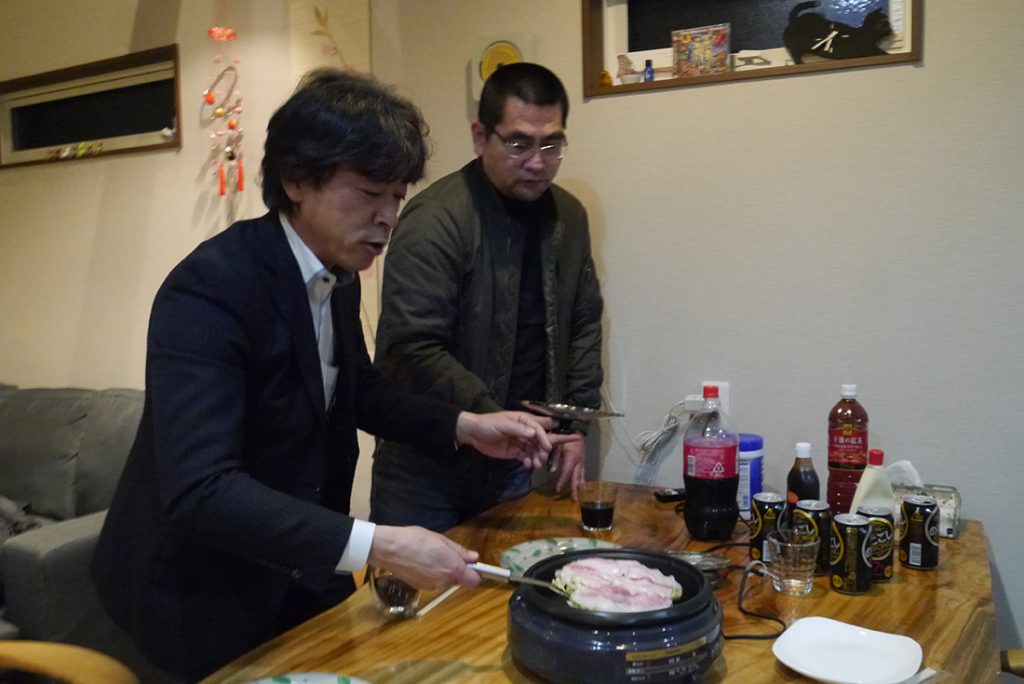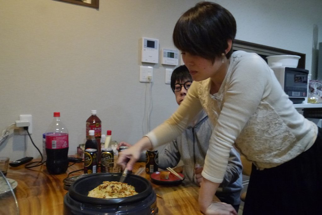 お好み焼きをせっせと焼いているのはセイケンハウスの料理男子です!