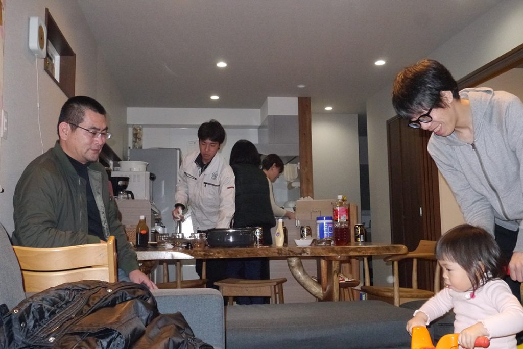 プレゼントの中身を確かめていただいて竣工式は無事終了でしたが、T様からお食事の用意をしていただきました!