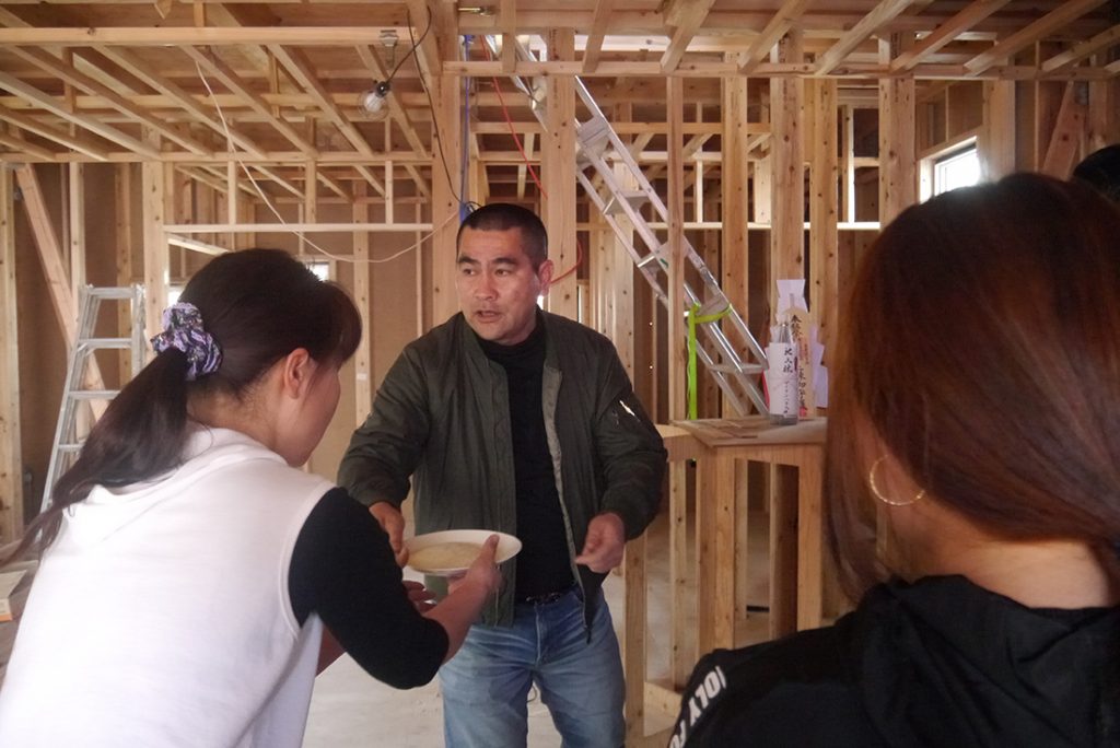 棟上げ、上棟式と続いた2日間でより一層家づくりに対する思い入れ、信頼関係が深まったようですね(≧▽≦)