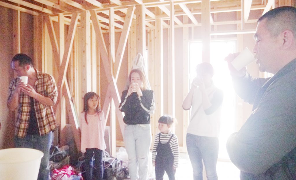 四方祓いでは、建物の四隅に酒、塩、米を撒いて祓い清めこれからの工事の無事を祈ります!