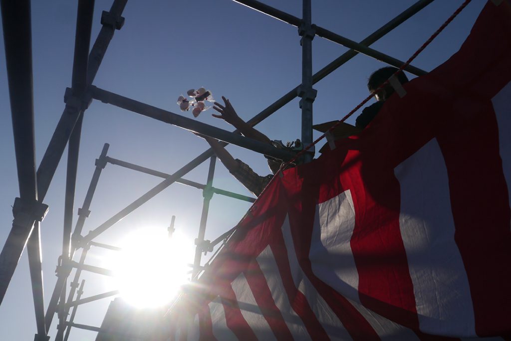 K様のごあいさつの後、元気な掛け声とともに餅まきスタートです!