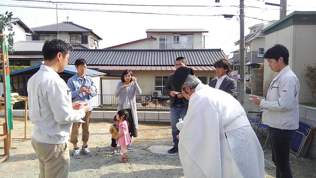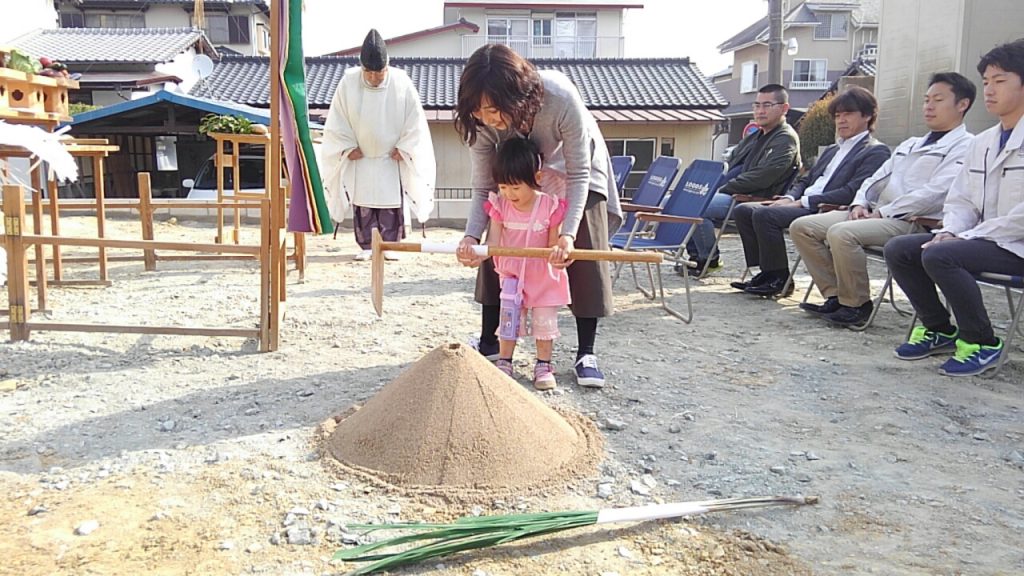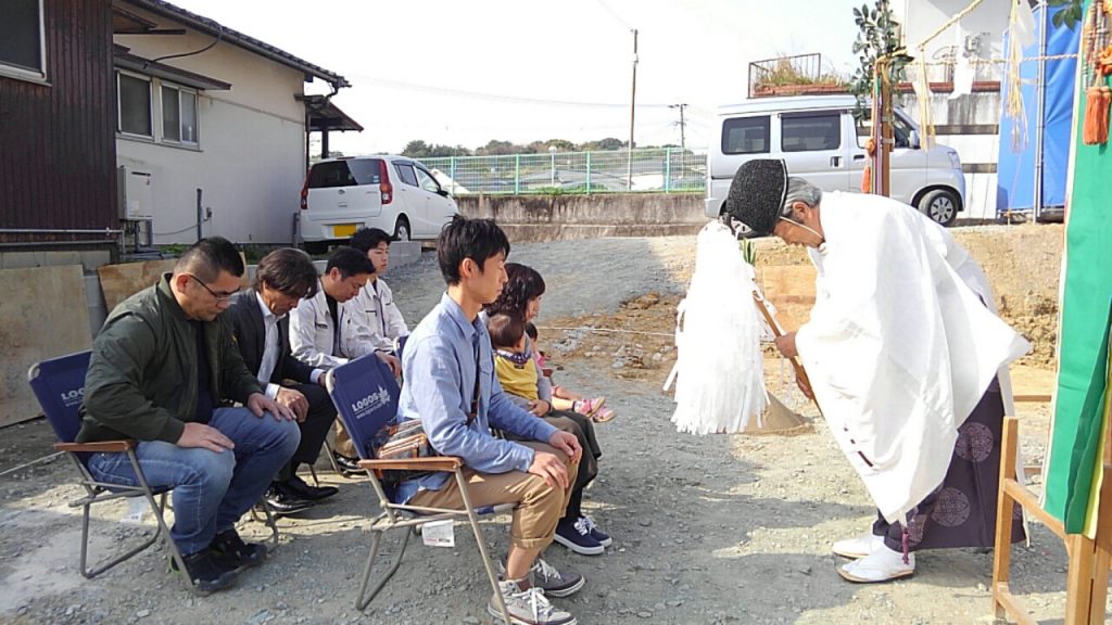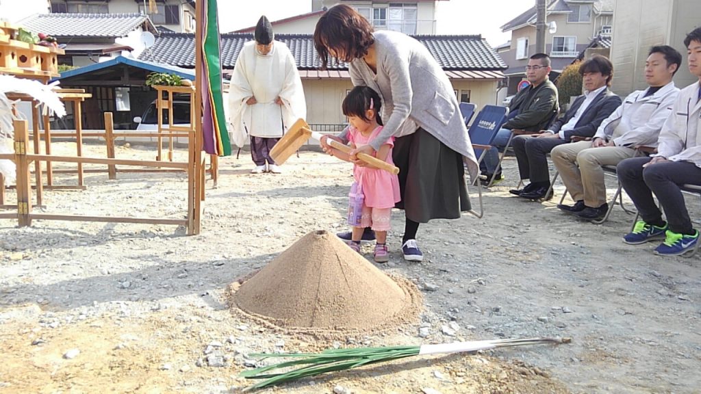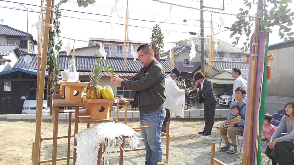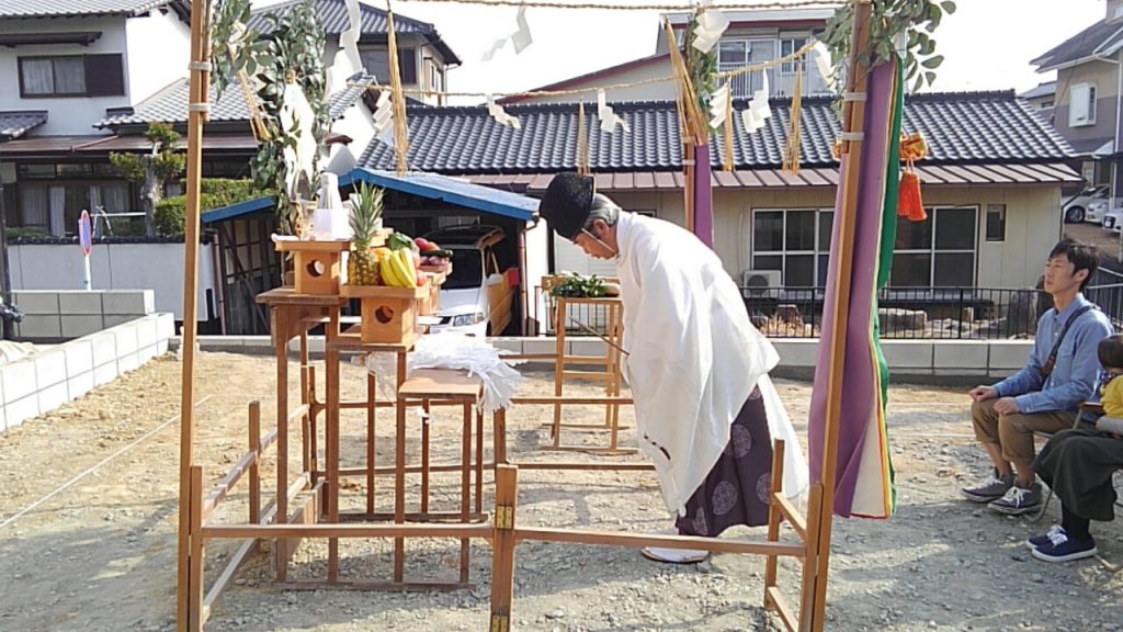 地鎮祭とは、建築工事などを始める前にその土地の神様(氏神)を鎮め、土地を利用させてもらう事の許しを得る行事です!