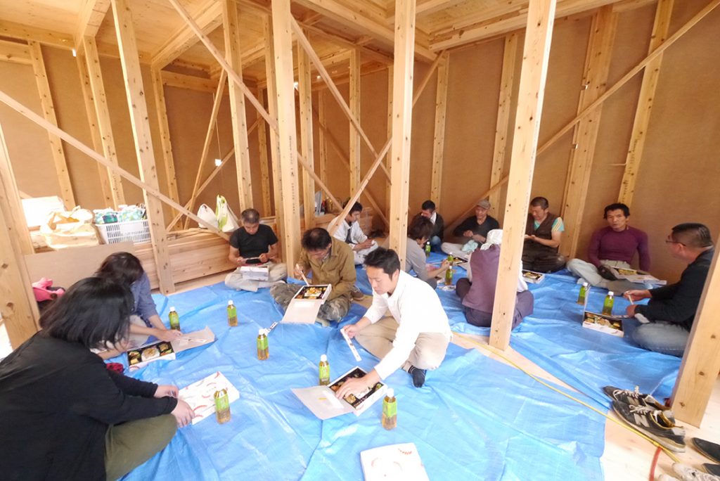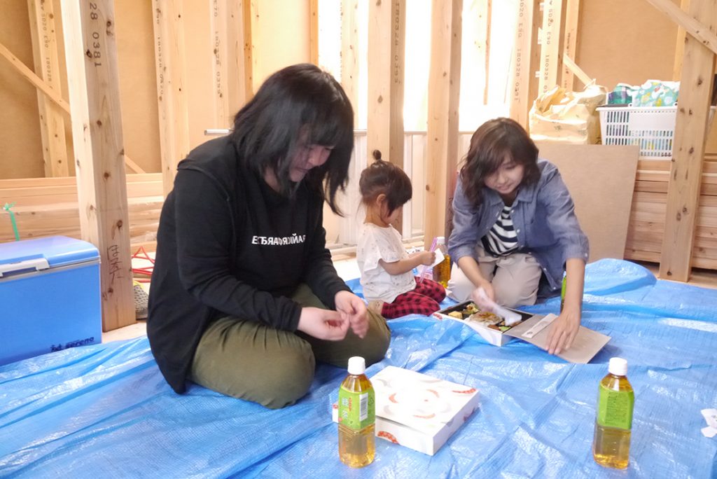 差し入れのお弁当を大工さん、スタッフ、M様とそろっていただきました(#^^#)♪
