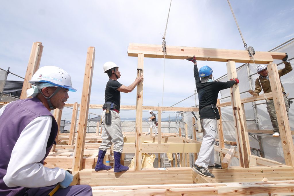先日、志免町王子に建築予定のM様邸にて棟上げ工事が行われました!
