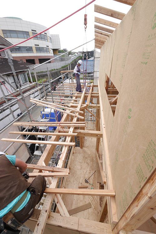 無事に棟木も上がり、屋根下地工事に進みます♪