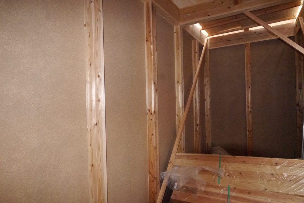 同時に柱と柱の間に耐力面材と呼ばれるハイベストウッドも貼っていきます!
