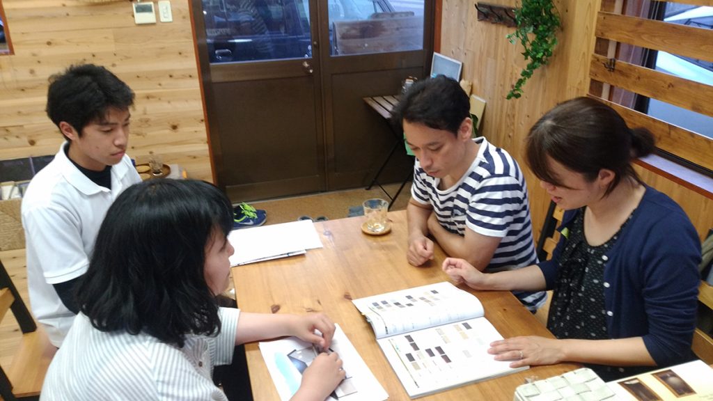 セイケン事務所にはたくさんのカタログや見本があり、その中から施主様の好みに合ったものを選んでいただきます♪