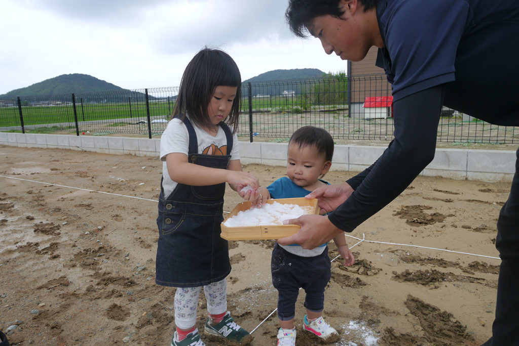 Aちゃん姉妹も、お塩を撒いて祈念します!