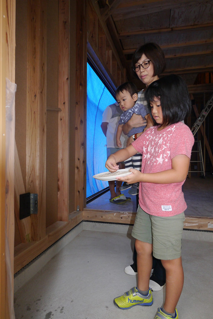 四方祓いは、建物の四隅の柱を酒・塩・米で清め、竣工までの無事を祈ります!