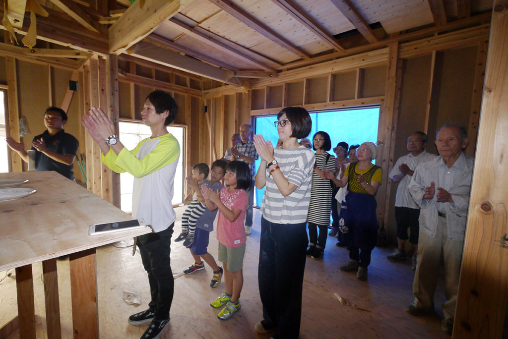上棟のおめでたい席なので、『おめでとうございます!』のご唱和で(*’▽’)