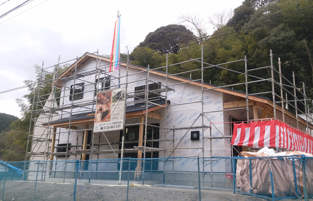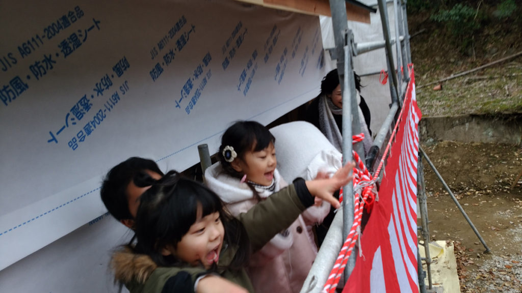 先日、棟上げが無事に終わったF様邸にて上棟式、餅まきが行われました!