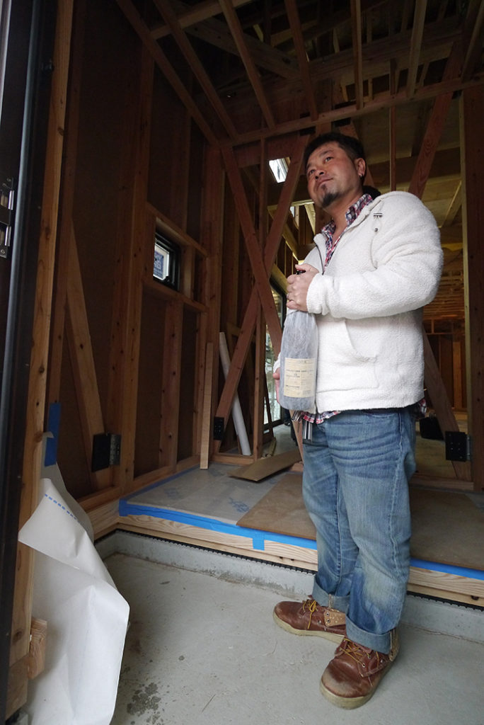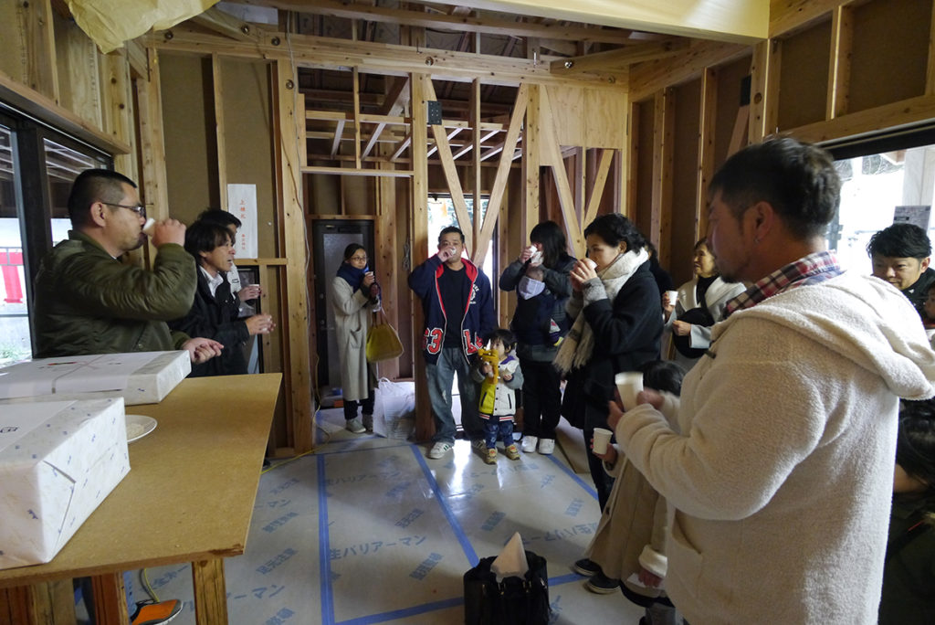 上棟のおめでたい席なので、『おめでとうございます!』のご唱和で行いました!