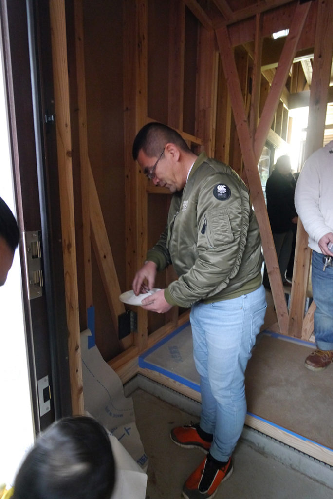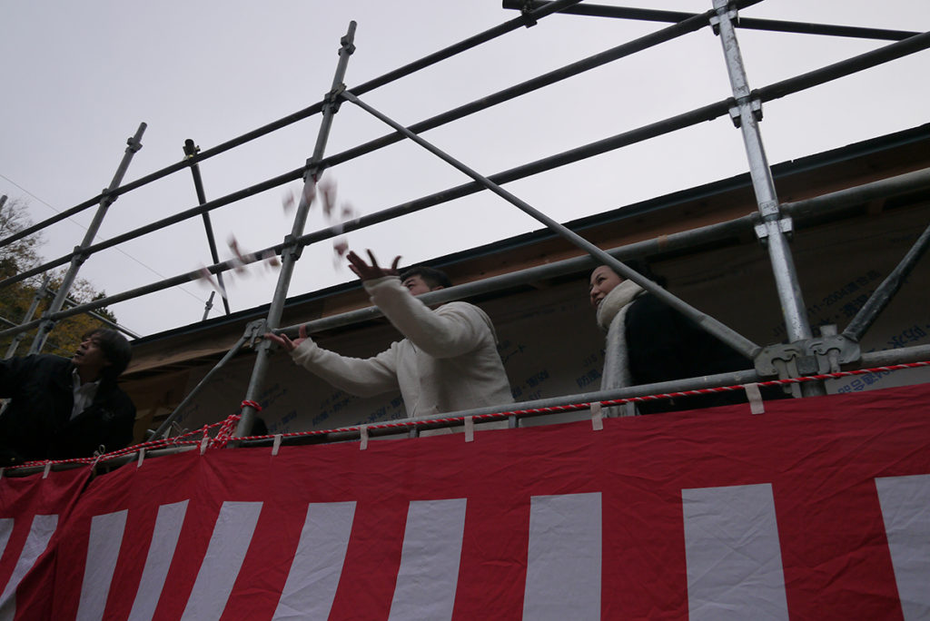 施主様よりご挨拶していただき、餅まきスタート!
